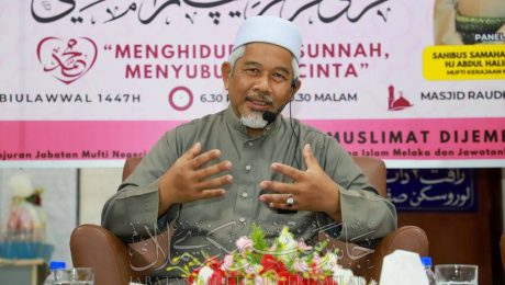 AYER LIMAU, 19 September – Sempena sambutan Maulidur Rasul 1447 Hijrah, Jabatan Mufti Negeri Melaka telah menganjurkan Forum Bicara Mufti bertemakan “Menghidupkan Sunnah, Menyuburkan Cinta”, bertempat di Masjid Raudhatul Solihin, Ayer Limau, Masjid Tanah.